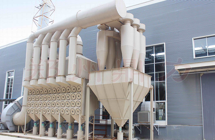 旋風(fēng)除塵器工作時(shí)時(shí)利用旋轉(zhuǎn)氣流所產(chǎn)生的離心力將塵粒從合塵氣流中分離出來(lái)的除塵裝置。經(jīng)改進(jìn)后的特制旋風(fēng)除塵器,其除塵效率可達(dá)85%以上。旋風(fēng)除塵器內(nèi)部氣流與塵粒的運(yùn)動(dòng)概況:旋轉(zhuǎn)氣流的絕大部分沿器壁自圓簡(jiǎn)體,呈螺旋狀由上向下向圓錐體底部運(yùn)動(dòng),形成下降的外旋含塵氣流,在強(qiáng)烈旋轉(zhuǎn)過(guò)程中所產(chǎn)生的離心力將密度遠(yuǎn)遠(yuǎn)大于氣體的塵粒甩向器壁,塵粒一旦與器壁接觸,便失去慣性力而靠入口速度的動(dòng)量和自身的重力沿壁面下落進(jìn)入集灰斗。旋轉(zhuǎn)下降的氣流在到達(dá)圓錐體底部后沿除塵器的軸心部位轉(zhuǎn)而向上,形成上升的內(nèi)旋氣流,并由除塵器的排氣管排出。自進(jìn)氣口流人的另一小部分氣流,則向頂蓋處流動(dòng),然后沿排氣管外側(cè)向下流動(dòng),當(dāng)達(dá)到排氣管下端時(shí),即反轉(zhuǎn)向上隨上升的中心氣流一同從誹氣管排出,分散在其中的塵粒也隨同被帶走,該機(jī)有一個(gè)缺點(diǎn)是捕集微粒小于5微米的效率不高。