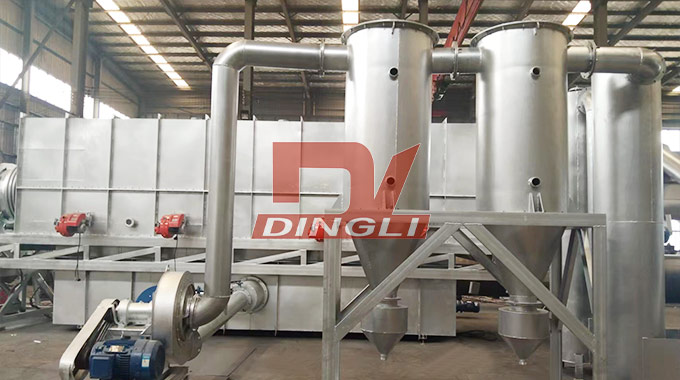 加拿大客戶訂購的橄欖渣連續炭化爐已經生產完成。客戶想將橄欖渣炭化,其水分含量為8%。客戶還購買了一臺壓塊機和一臺網帶式干燥機。木炭粉碳化后,經成型機加工,得到橢圓形的成型塊,運入網帶式干燥機進行二次干燥。