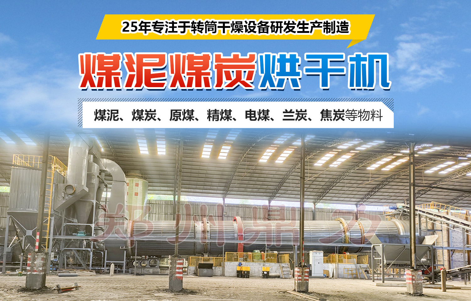 鼎力煤泥烘干機主要由熱源、喂料裝置、帶式上料機、回轉滾筒、帶式出料機、引風機、除塵器和配電柜構成。該套設備工作原理如下:物料由于具有一定的粘性,濕物料進入干燥滾筒后分以下幾個工作區:一是導料區,濕物料泥進入此區與高溫熱風接觸迅速蒸發水分,物料在大導角的導料板抄動下,形不成粘結便被導入下一個工作區;二是抄起清理區,濕料在此區被抄板抄起形成料幕狀態,物料落下時易形成粘結滾筒壁現象,在此區由于設備設計有清掃裝置,清掃裝置便十分合理地清掃了內壁粘附的物料,在這個過程中,清掃裝置對于物料團球結塊也起破碎作用,從而增加了熱交換面積,提高了干燥速率;三是傾斜揚料板區,濕煤泥在此區已 呈低水分松散狀態,物料在此區已不具有粘結現象,經過充分熱交換后物料達到所要求的水分狀態,進入出料區;四是出料區,滾筒在此區不設抄板,物料在此區滾動滑行至排料口,完成整個烘干過程。