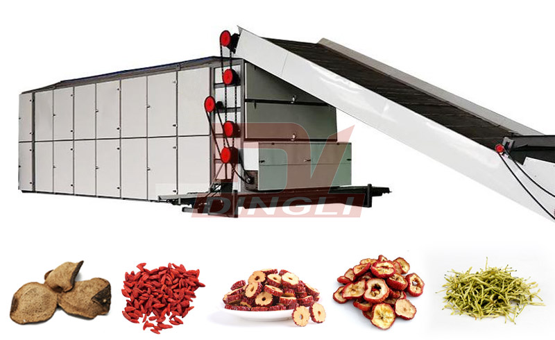 草藥網帶式烘干機適用于塊狀、條狀、片狀和顆粒狀的商業作物,如:洋蔥、大蒜、辣椒、杏子、瓜子、花生、紅薯、土豆、木薯、枸杞、紅棗、香草、甜瓜、蔬菜、水果等。